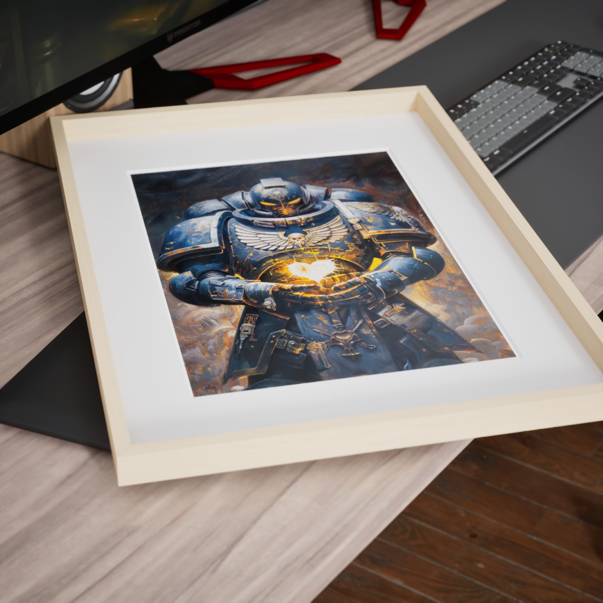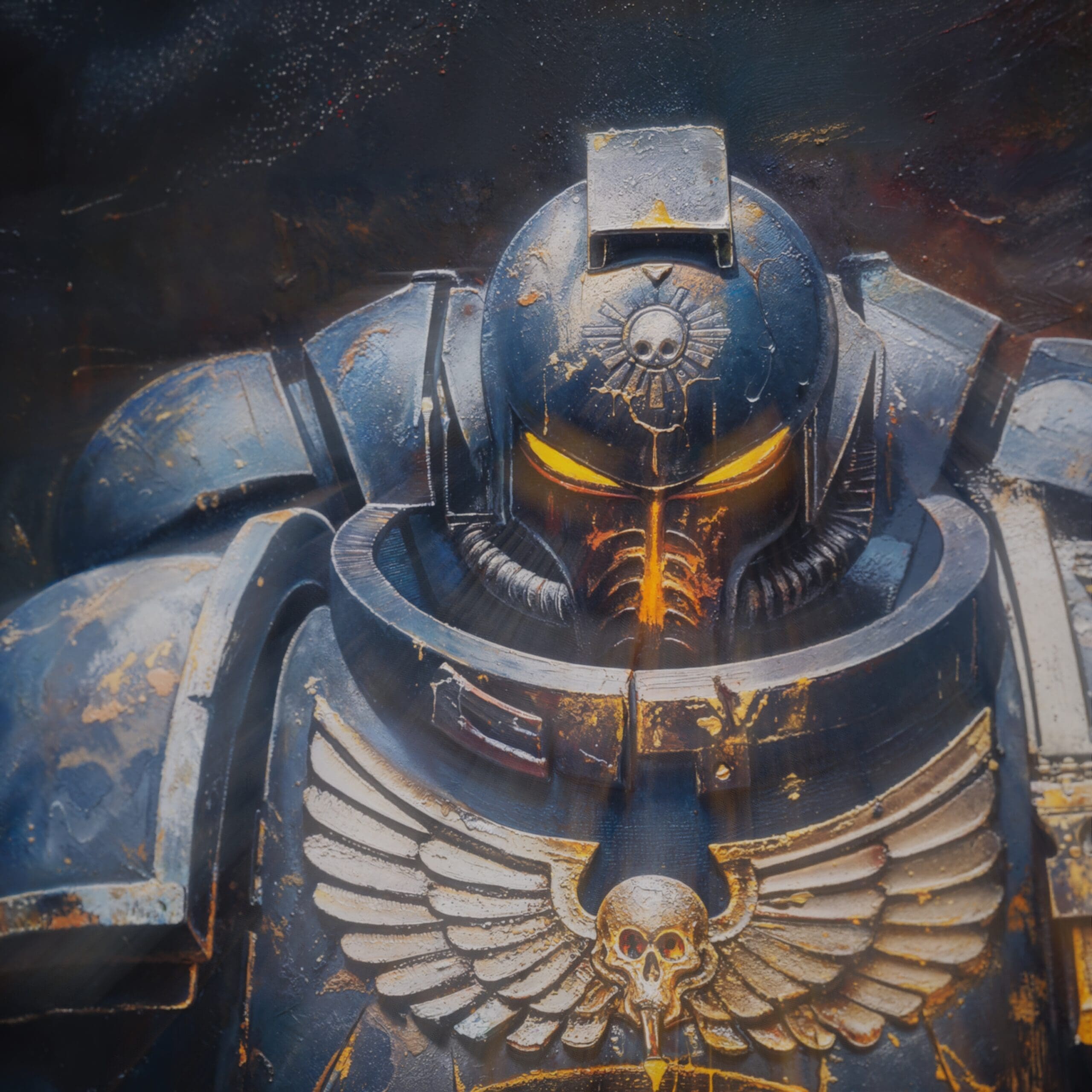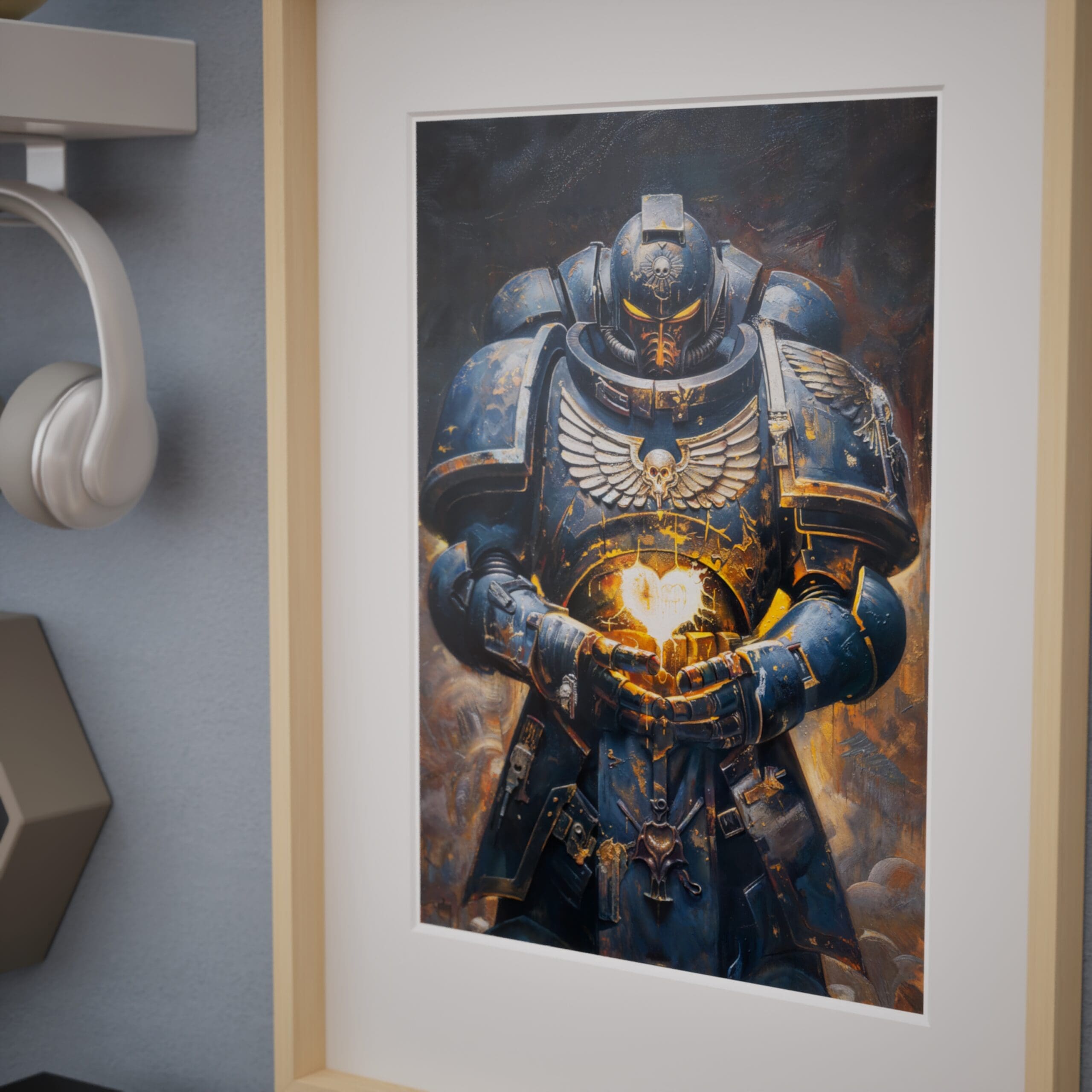 Deep in the grim depths of the cosmos, a lone Space Marine stands as a beacon of unwavering devotion. His battle-worn armor reveals a radiant heart, aflame with eternal loyalty to those he protects. Even in the face of the universe’s darkest threats, his steadfast love shines brightly for all to see.